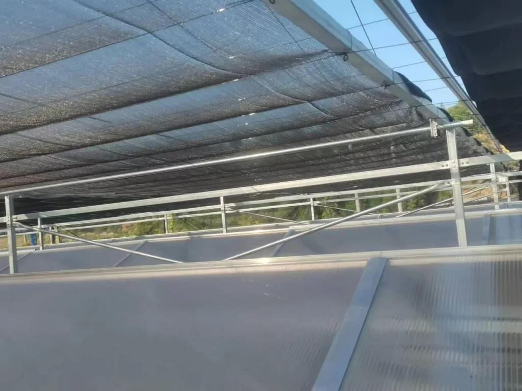 Установка теневых сеток позволяет эффективно уменьшить поступление солнечного излучения внутрь теплицы, снизить интенсивность освещения и температуру в помещении. Этот метод подходит для периодов сильного освещения (например, с 10:00 до 16:00), однако необходимо следить за тем, чтобы степень затенения не превышала 30–50 %, чтобы не нарушить процесс фотосинтеза. Охлаждение с помощью распыления воды осуществляется путем распыления воды в виде микрочастиц с помощью системы высокого давления; эти частицы быстро испаряются в воздухе, поглощая тепло, что обеспечивает локальное понижение температуры. Этот метод подходит для влаголюбивых культур, таких как сельдерей и водяной шпинат, однако следует избегать его чрезмерного использования в периоды высокой температуры и влажности, чтобы предотвратить возникновение болезней, вызванных чрезмерной влажностью.
